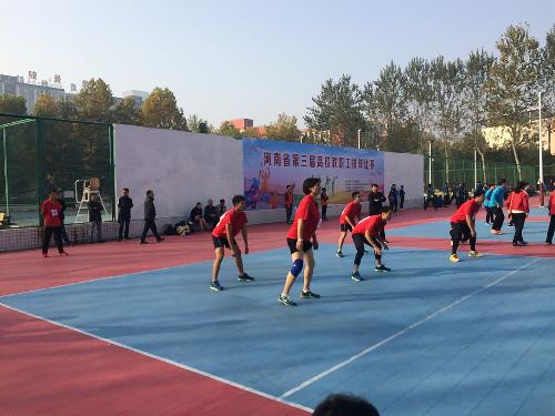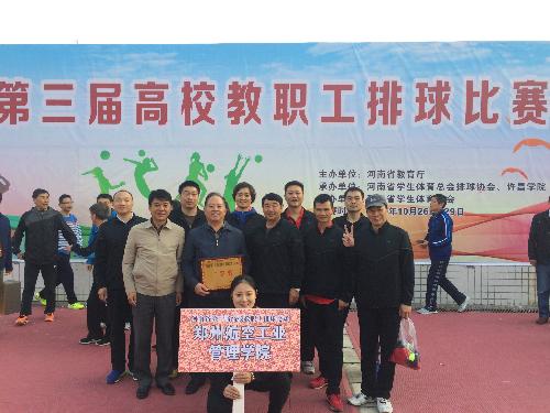 10月26日至10月29日,河南省第三届高校教职工排球比赛在许昌学院举行,我校教职工男队参加了比赛。经过3天的激烈角逐,我校代表队获得第六名,荣获二等奖。 本届比赛由河南省教育厅主办,河南省学生体育总会排球协会、许昌学院承办。共有来自全省29所高校的43支队伍参加了本次比赛,参赛规模为历届最高。 我校在接到此次比赛的通知后,学校高度重视,根据领导指示要求,校工会和体育教学部精心组织,积极训练。在第一天上午的比赛中,校党委副书记石培哲同志亲临现场,队员们个个精神抖擞,斗志昂扬,取得第一场比赛的开门红。随后经过教练耐心指导、认真部署,队员们团结一致,努力拼搏,我校代表队以小组赛全胜战绩,小组积分第一,顺利挺进第二阶段淘汰赛。淘汰赛中我校代表队再接再厉,最终取得第六名,荣获二等奖的好成绩,即锻炼了我校教职工排球队伍,又为我校争得了荣誉。 排球运动是一项深受我省高校广大师生喜爱的运动项目,本次比赛河南省高校组队参赛积极性很高,既提高了我省高校教职工排球运动水平,也加强了各高校间的交流和联系,展示了教职工队伍良好的精神风貌,增进了相互间的友谊。(校工会 郭建洲文)